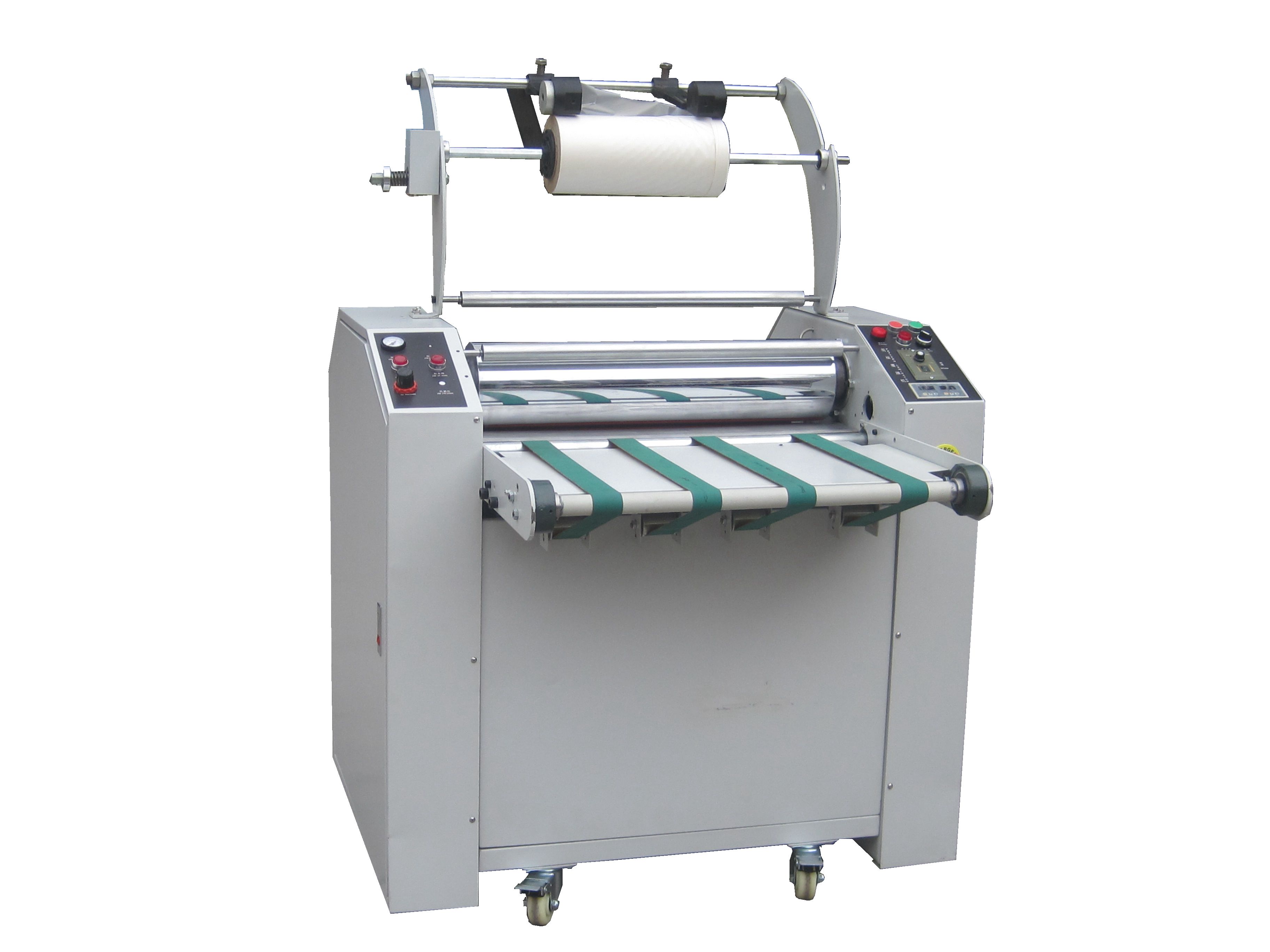 The automatic feeding hot laminating machine for color box paper is used for laminating film, paper and printing.